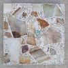 - موزاییک لاشه مرمر سبز دارای بافت سنگی طبیعی و تکههای درشت سنگ است که نمایی چشمنواز ایجاد میکند.