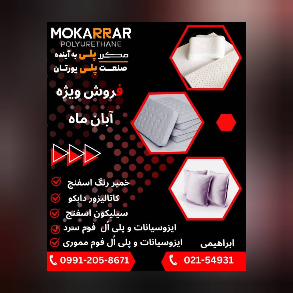 شرکت پلی یورتان مکرر به عنوان یکی از تولیدکنندگان معتبر مواد اولیه صنایع پلی یورتان (PU) و پلیمری در کشور شناخته میشود. شرکت پلی یورتان مکرر مجموعهای متنوع از محصولات باکیفیت را ارائه میدهد که شامل انواع پلیول ها و ایزوسیاناتها میباشد.شرکت پلی یورتان مکرر محصولات نظیر انواع مواد اولیه فوم سرد و گرم و مواد اولیه مموری ، مواد اولیه ابر و اسفنج ، و کاتالیست ها- حلالها و سیلیکون اسفنج ،و همچنین خمیر رنگ اسفنج در رنگ های متفاوت را ارائه میدهد .